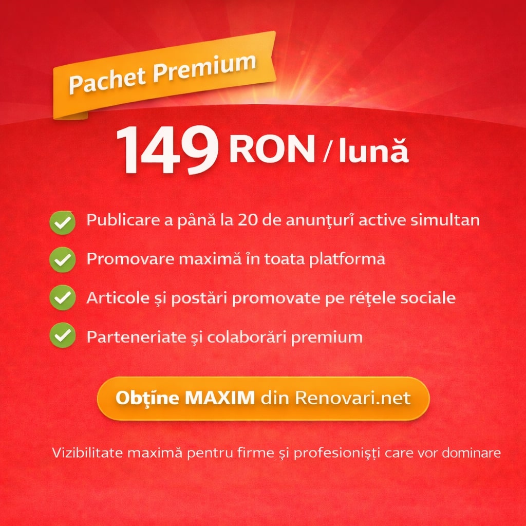Pachetul Premium este vârful ofertei Renovari.net și oferă vizibilitate maximă tuturor profesioniștilor care doresc o prezență completă.